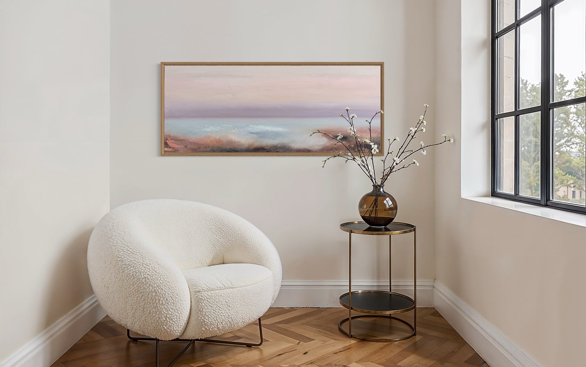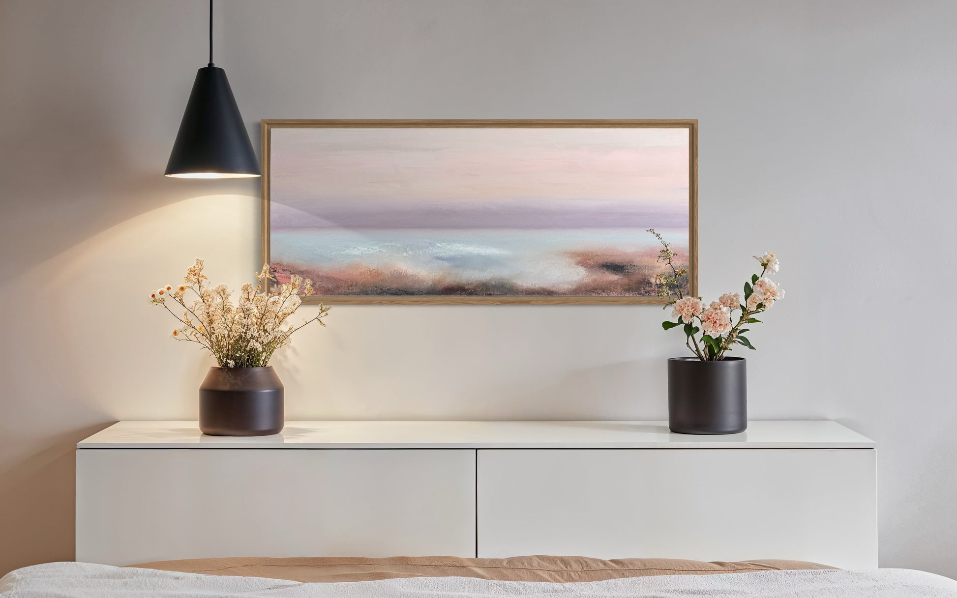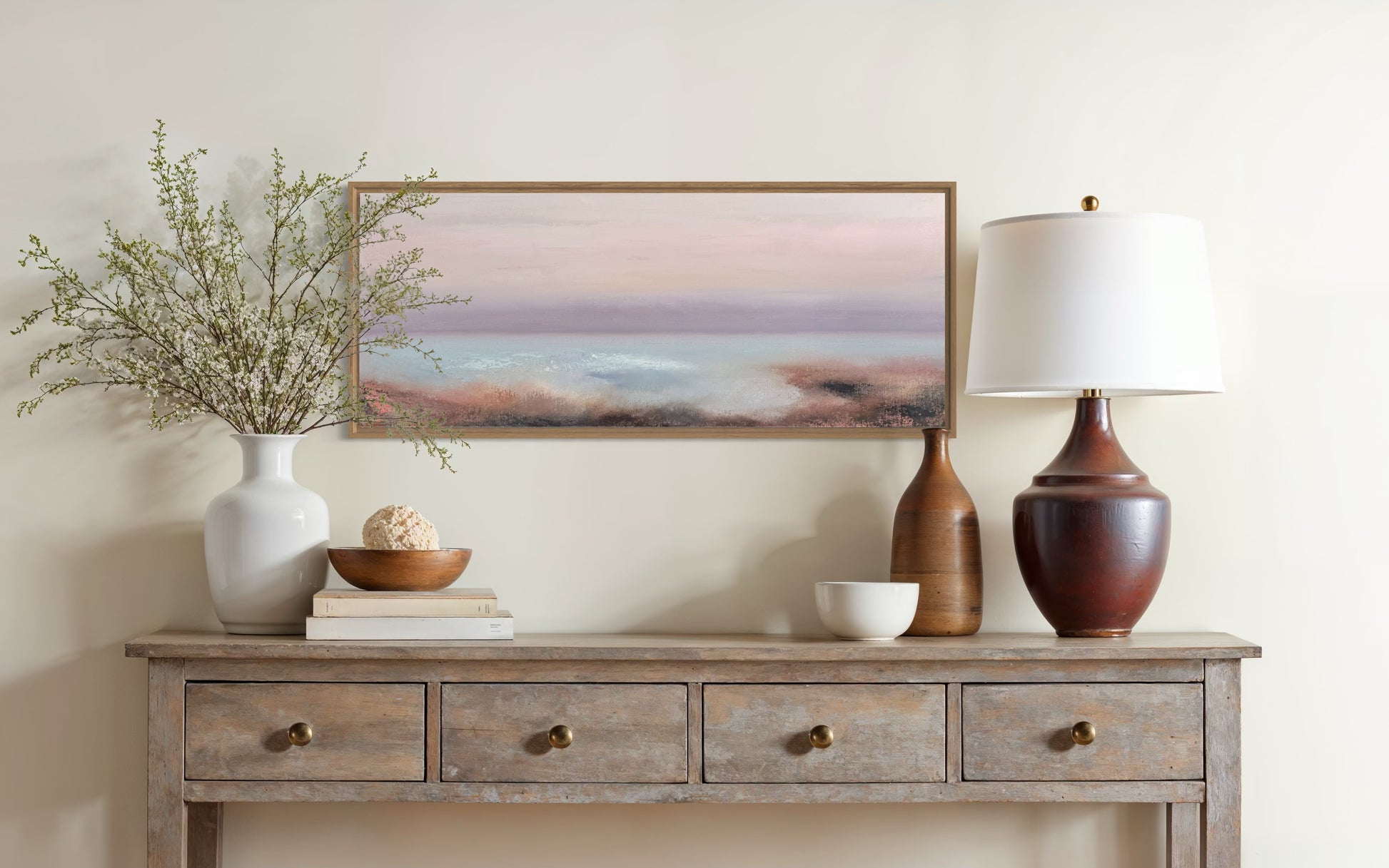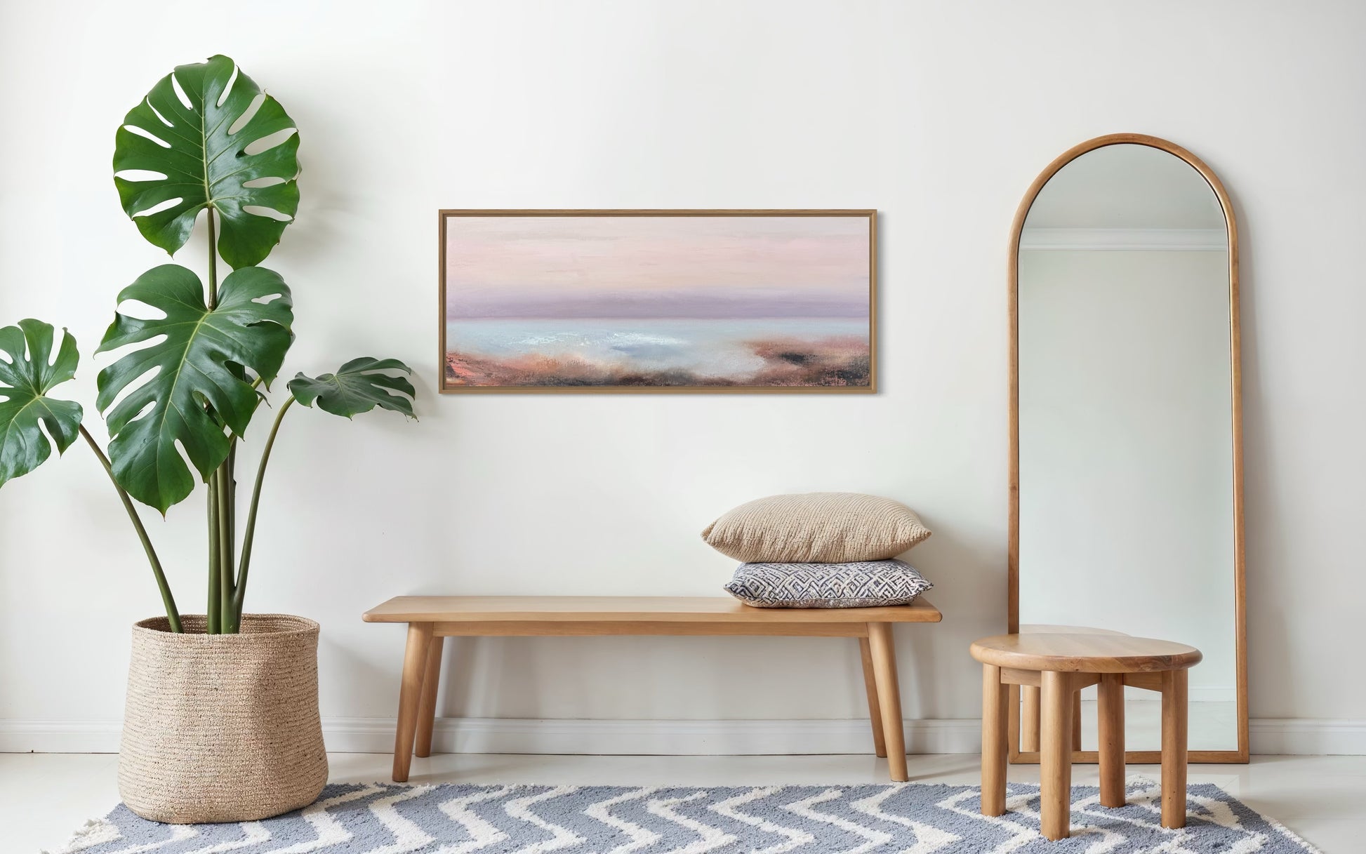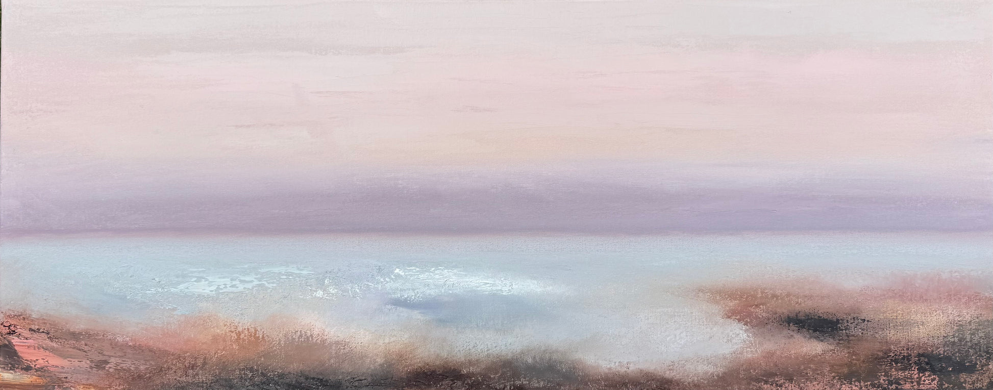 A serene seascape blending soft pastels, capturing the peaceful transition of dawn.